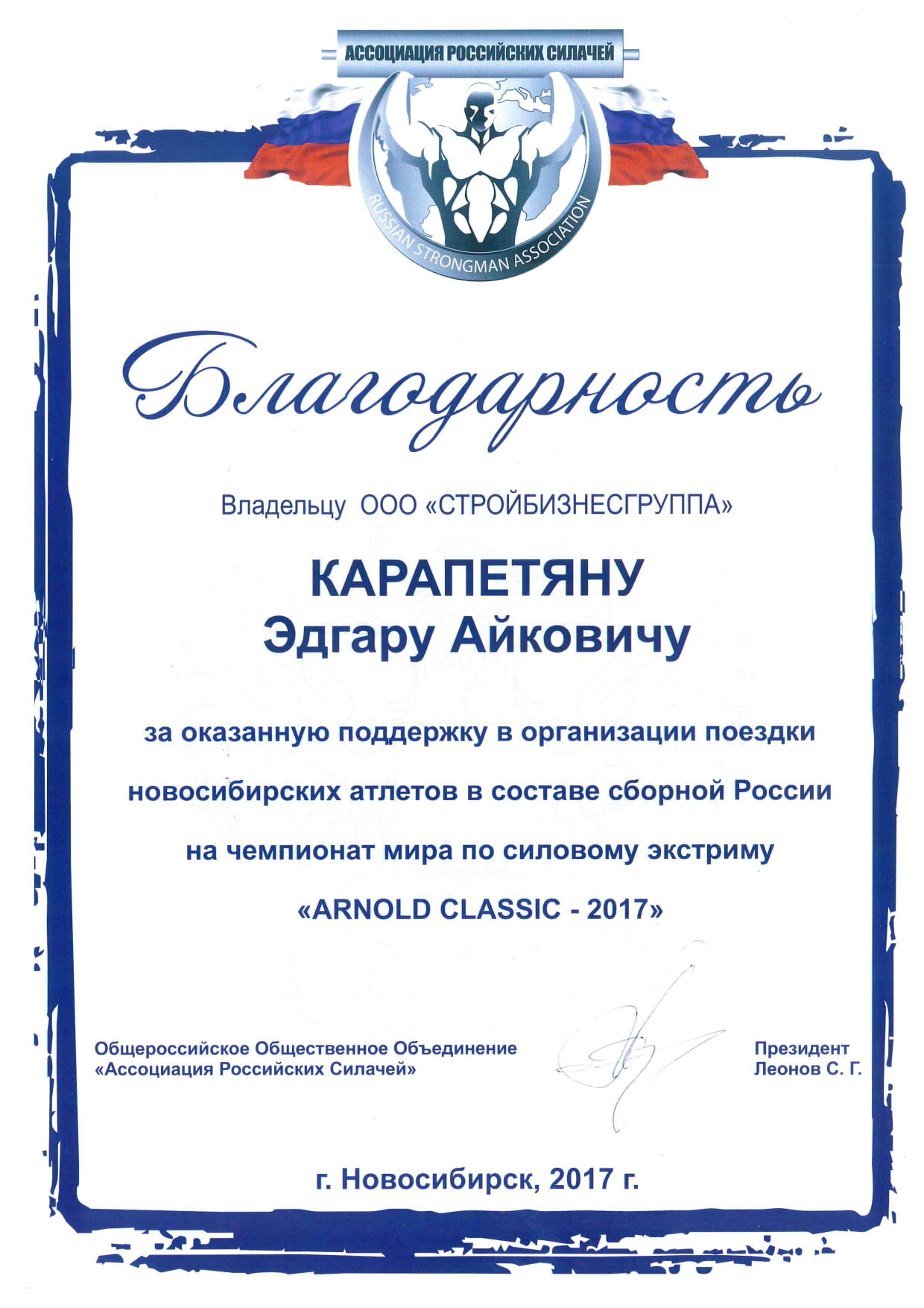 Общероссийское Общественное Объединение «Ассоциация Российских силачей».