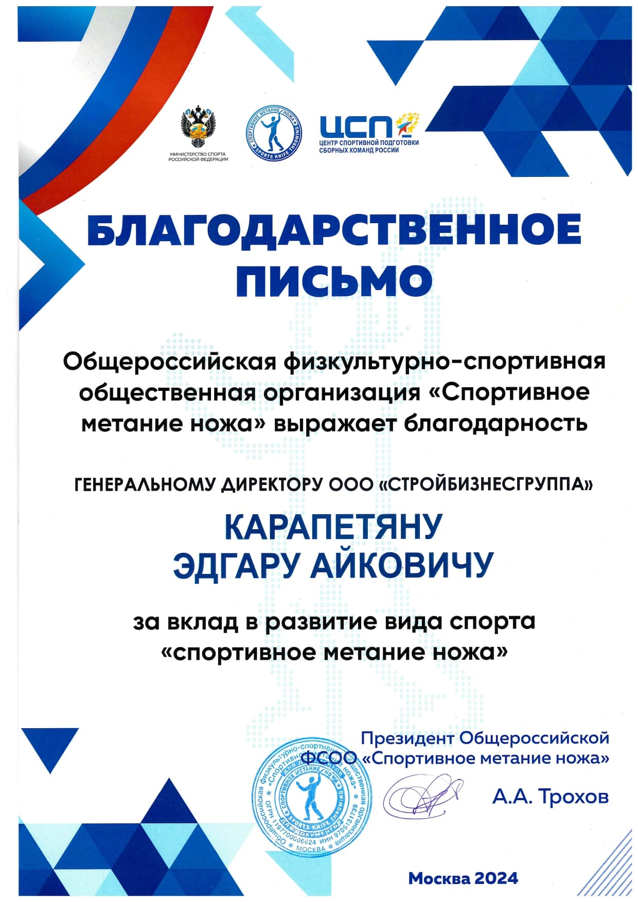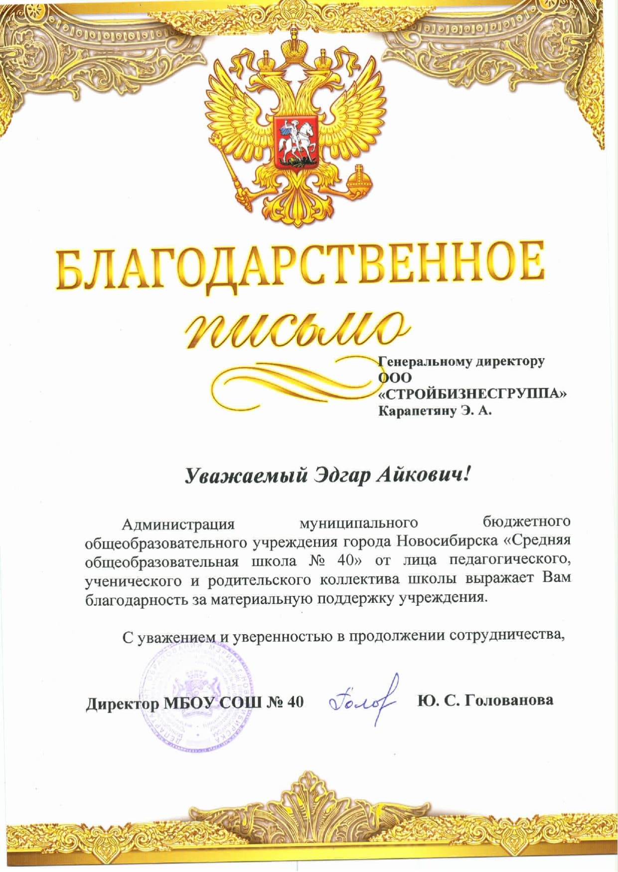 Благодарственные письма